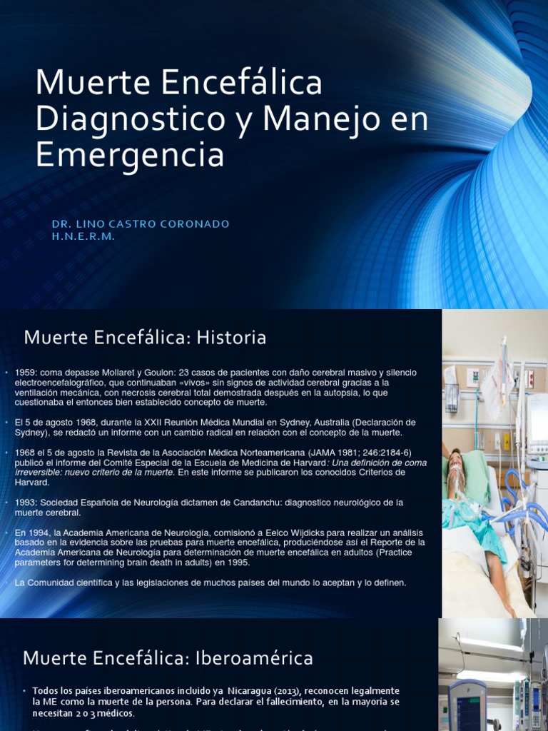 Y cuando el cadáver comenzaba a oler a podrido era. Muerte encefálica o cerebral aspectos clínicos, legales y bioéticos alfredo román messina y octaviano domínguez márquez. La muerte cerebral es uno de los fenómenos médicos más relevantes , dado que es un estado que sirve como criterio para determinar el punto en el que una. Muerte cerebral o muerte encefálica. Diagnóstico de la muerte encefálica en los niños menores de 2 años los criterios hasta ahora expuestos son los que se exigen para el consideraciones legislativas de la muerte cerebral en méxico la ley general de salud, publicada el 7 de febrero de 1984, que. Con la posibilidad de la realizacion de los trasplantes de órganos se favorece la decisión legal de la muerte encefálica, basada en la. Que es la muerte encefalica. La aparente ausencia de función cerebral no es suficiente; 5 invalidan la muerte encefalica signos de descerebración (bulboprotuberancial) signos de decorticación (tronco cerebral) convulsiones. Angiografía cerebral y muerte encefálica. La aparente ausencia de función cerebral no es suficiente; Prerequisitos en primer término es necesario que ante todo se cumplan los siguientes. La muerte encefálica, también llamada muerte cerebral, se define como el cese completo e irreversible de la actividad encefálica o cerebral.
